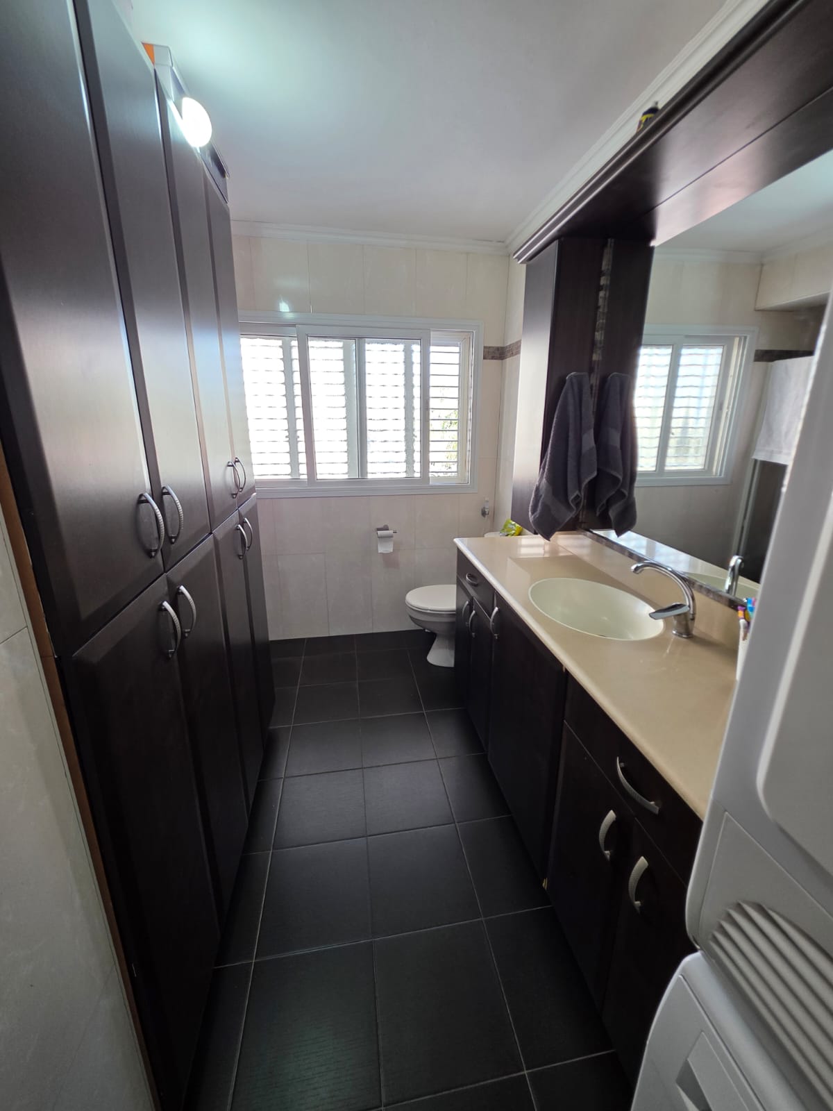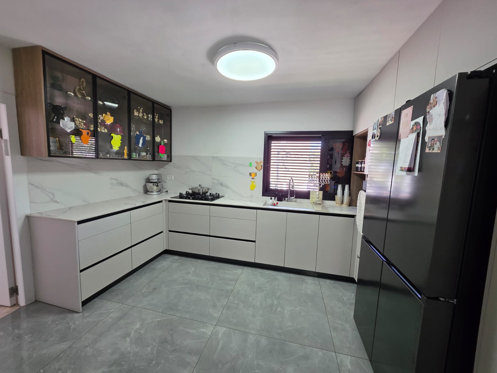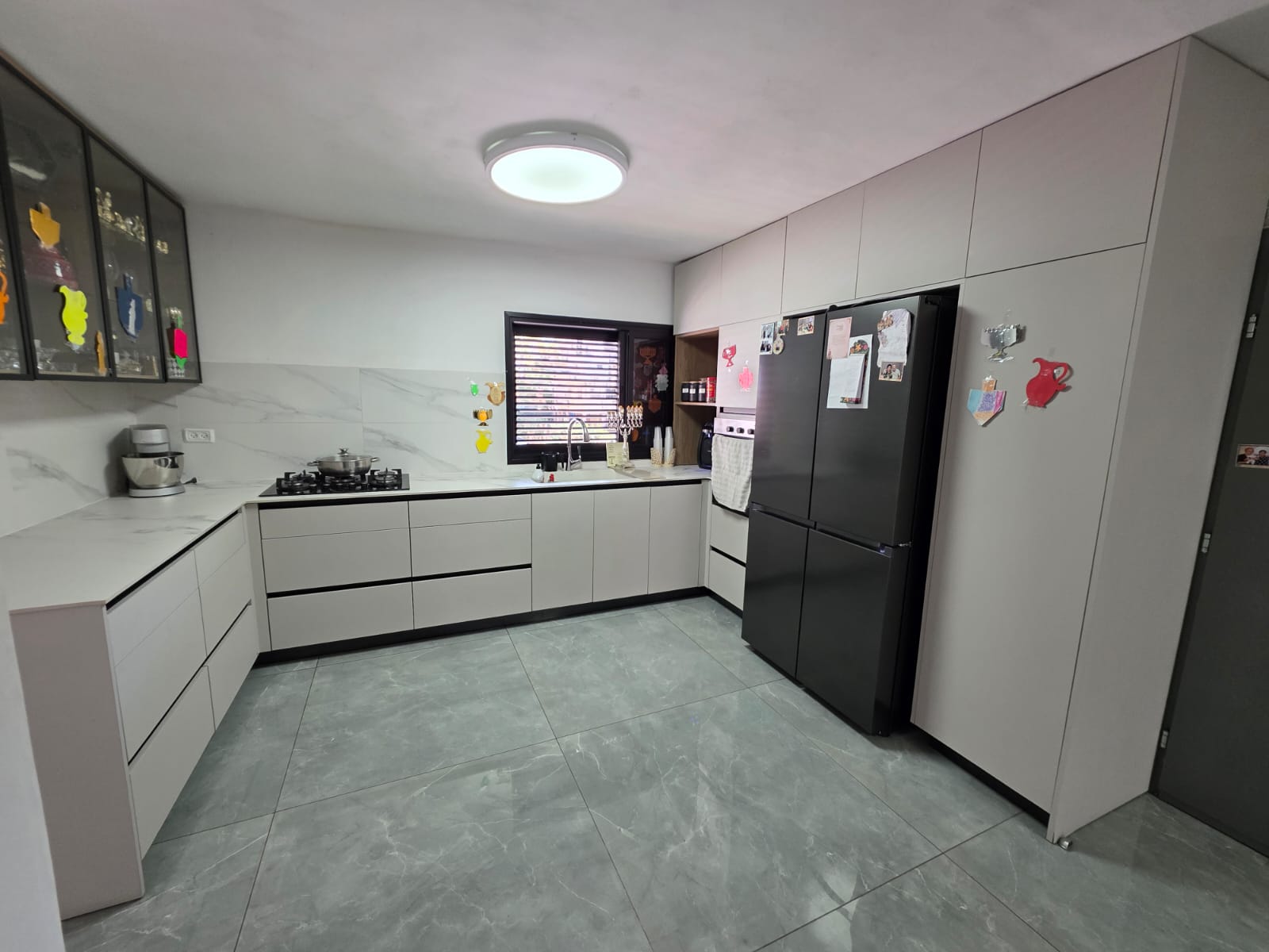 עיצוב וחלל: ריצוף גרניט פורצלן (מטר על מטר), פינת אוכל מוגדרת, ונישות אחסון חכמות הכוללות מזווה.