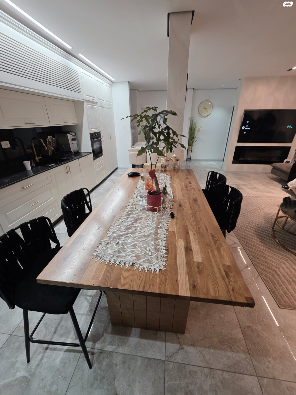 לב הבית: מטבח חדש בעיצוב נגר פרטי, הכולל אי ישיבה מפנק ופינת אוכל מוגדרת לאירוח מושלם.